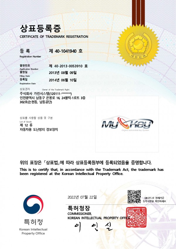[상표]제40-1041940호-제12휴 자동차용 도난방지 경보장치_page-0001